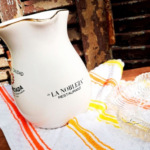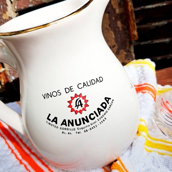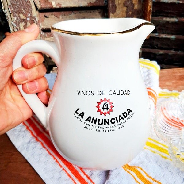 Jarra de cerámica publicitaria de vinos "La Anunciada" y el restaurant "La Nobleza"