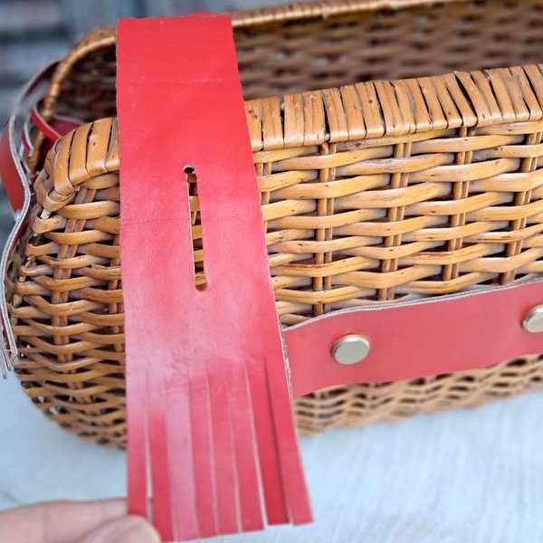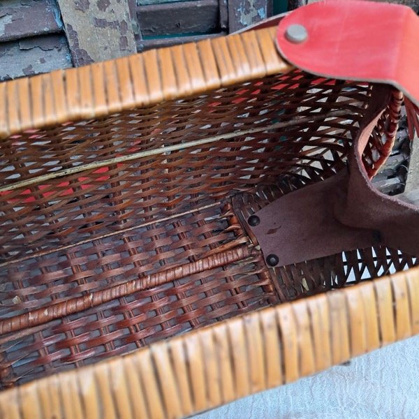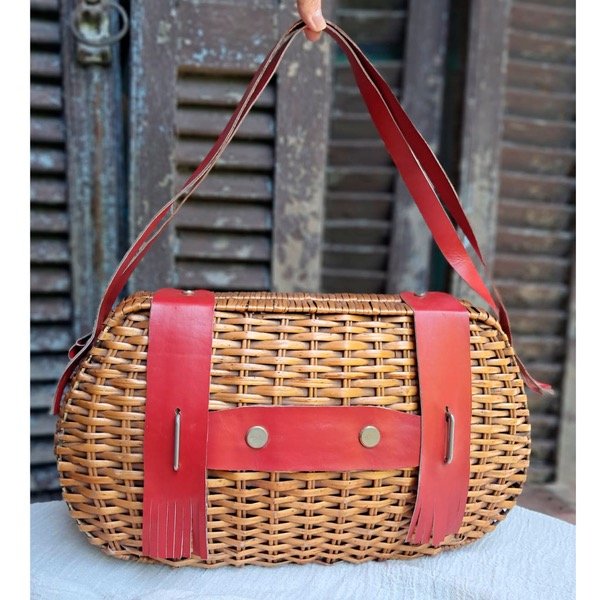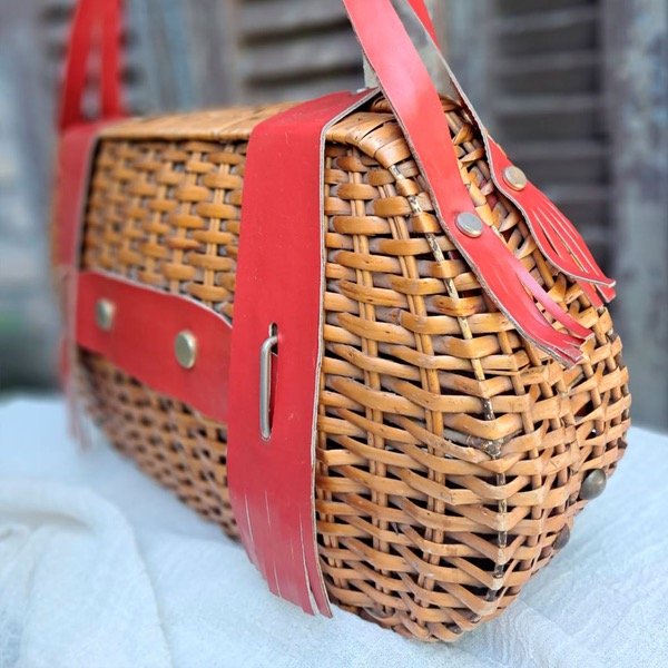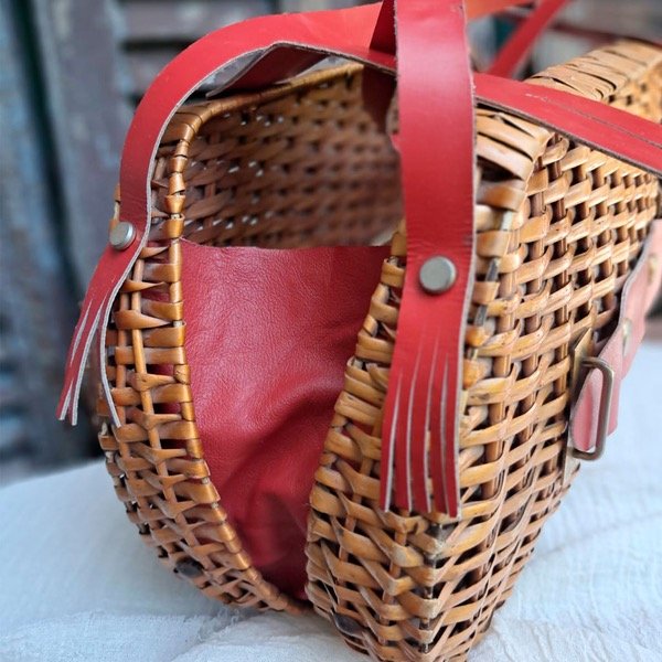 Divinisima cartera de mimbre con detalles en cuerina roja
