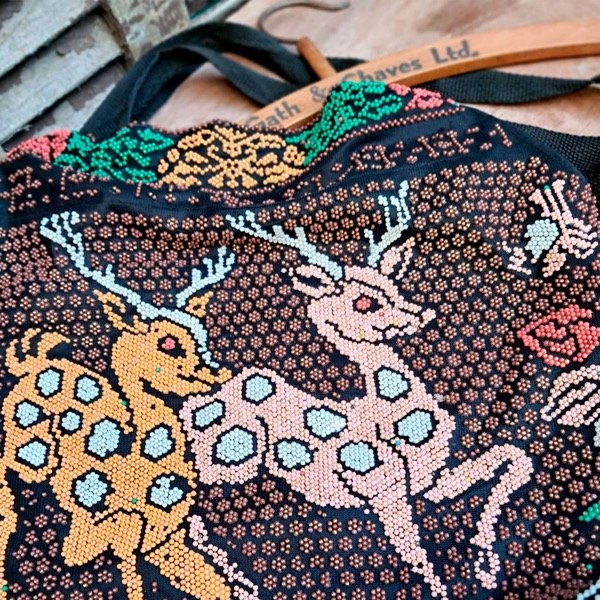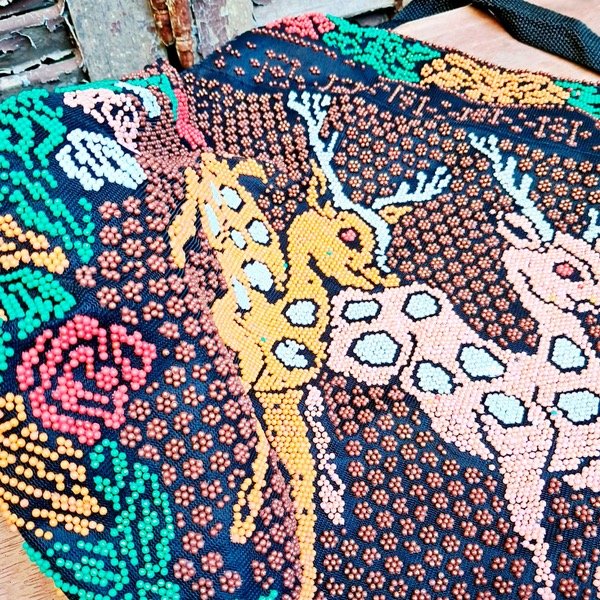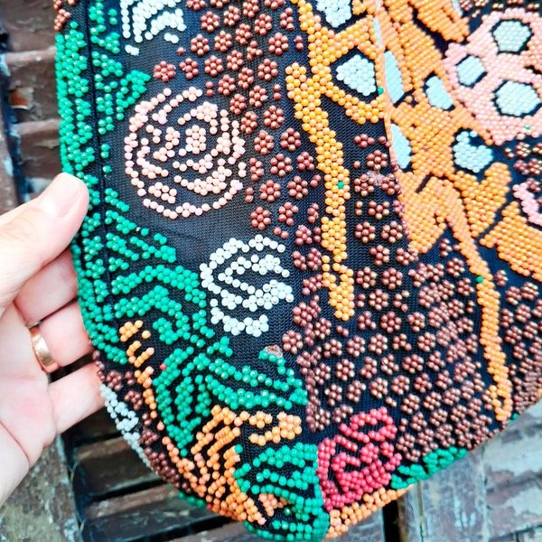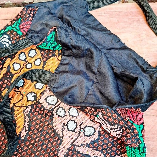 Bolsito antiguo cubierto de periltas de colores
